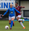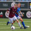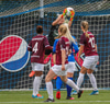 Stjarnan að gera sig líklega hér, Shameeka fær sendingu í gegnum vörn Selfyssinga en Kaylan kemst á undan í boltann en sparkar beint í Shameeku en því miður fyrir heimakonur berst boltinn ekki nægilega langt og gestirnir hreinsa