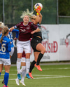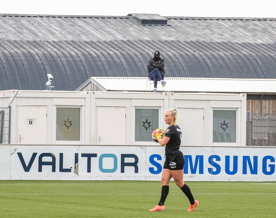Gestirnir fá hér sína aðra hornspyrnu í leiknum. Það kemur ekkert úr henni en gestirnir halda þó boltanum og vinna annað horn sem Clara tekur