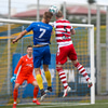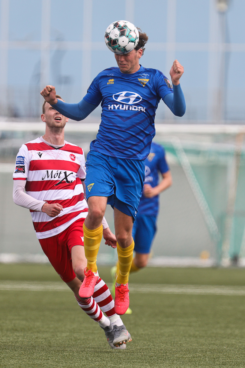HK með háan bolta fyrir markið ætlað Stefán Ljubicic en Hákon Rafn er alveg með þetta.