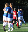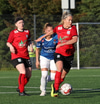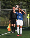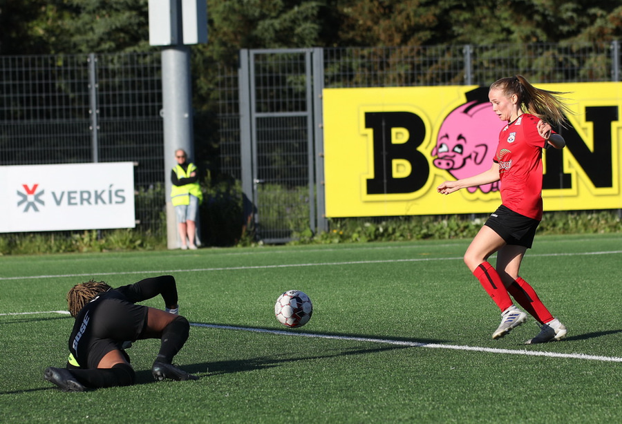 Elín Klara reynir fyrirgjöf frá hægri vængnum en Lilja Vigdís gerir vel og kemur boltanum frá.