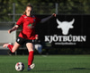 Boltinn kemur á nær og berst út í teiginn þar sem Guðrún Elísabet er mætt en hún hittir boltann illa með vinstri og skotið fer hátt yfir.