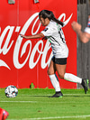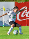 Vinstri bakvörðurinn Mary Alice er í feykistuði. Brunar hér upp völlinn og losar boltann svo í fínt skotfæri á Ísabellu. Hún nær hinsvegar ekki nægilega góðu skoti og Telma ver örugglega.