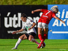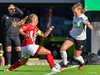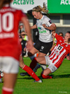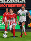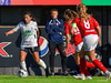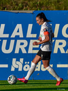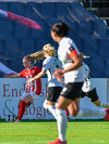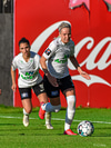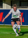 Stephanie ræðst á vörnina eftir innkast, kemst inn á teig vinstra megin og klárar í fjærhornið.