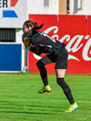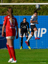 Mary Alice á flottan bolta inn á teig þar sem Stephanie er mætt og nær skalla að marki. Boltinn hinsvegar beint í lúkurnar á vel staðsettri Telmu.