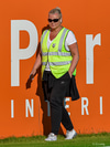Það er hálftími í leik og liðin á fullu í upphitun. Aðstæður eru eins og best verður á kosið. Sól, blíða, gullfallegur grasvöllur og einbeittir leikmenn.
