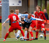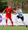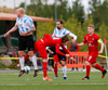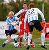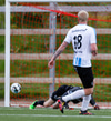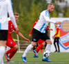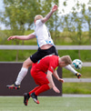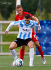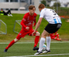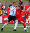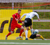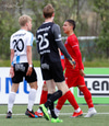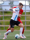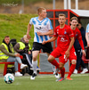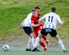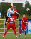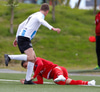 Þorsteinn Daníel fer ansi harkalega í Nikola Dejan. Dálítið heppinn að fá ekki gult spjald