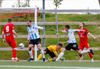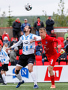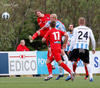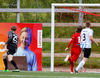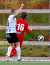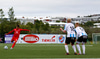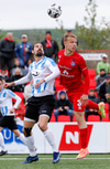 Oliver Helgi með skalla sem hefur viðkomu í varnarmanni en Stefán Þór slær yfir markið!