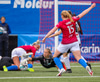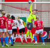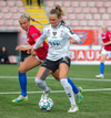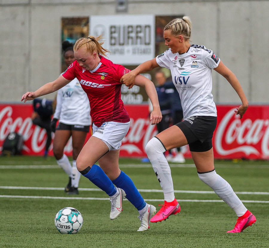 Klafs eftir aukaspyrnu leiðir af sér skot frá Hönnu Kallmaier en boltinn rúllar fram hjá stönginni. Sandra var aldrei í vafa.