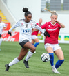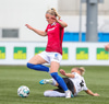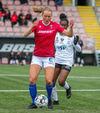 Elísa finnur Hlín í hlaupinu inná teiginn hægra meginn en fyrsta snertingin svíkur hana og boltinn fer afturfyrir.