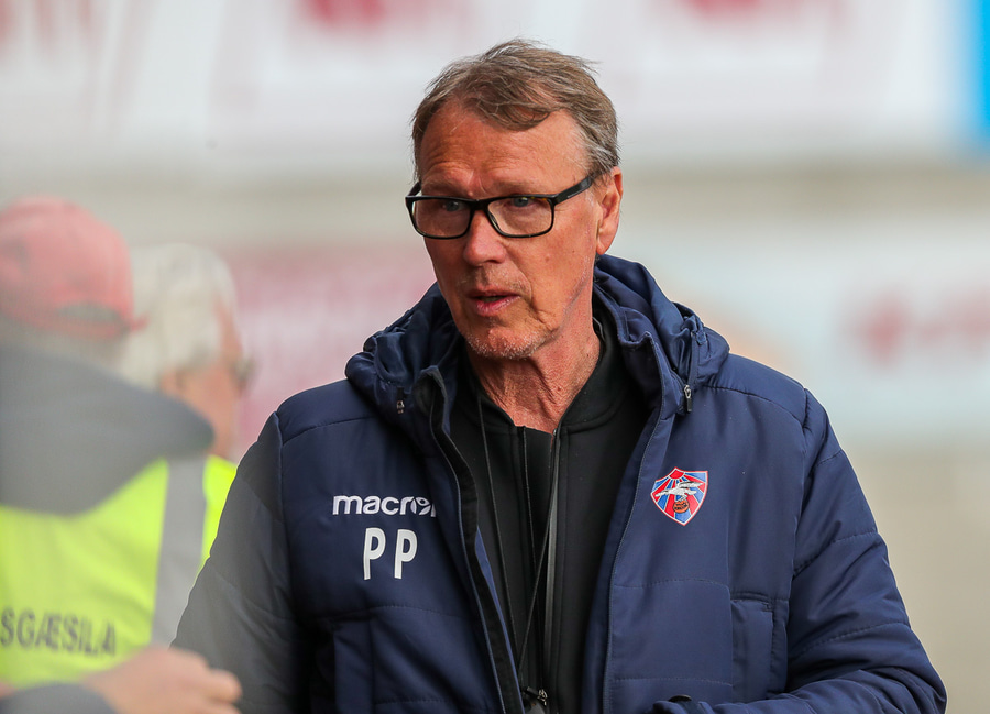Stutt í að leikurinn fari af stað. Veðrið er með ágætasta móti. Hæg gola, skýjað og hiti um 12 gráður.