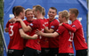 Liðin ganga inn á völlinn, þetta er að fara af stað!