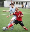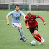Hafliði með sendingu á Gísla en hann nær ekki skoti á markið. Horn.