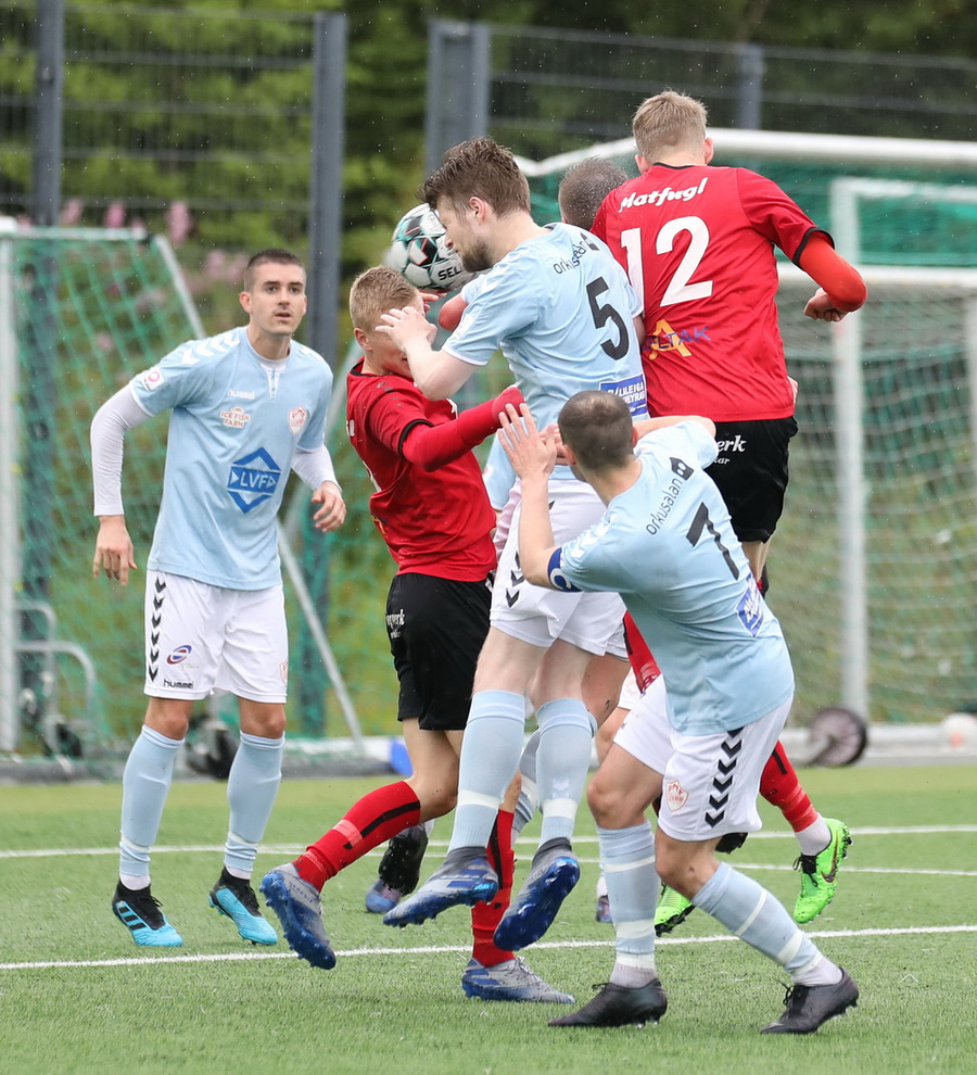 Leiknismenn fá horn frá hægri. Boltinn fellur fyrir utan teig og aukaspyrna dæmd á heimenn, ca 5 metrum frá d-boga