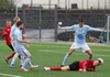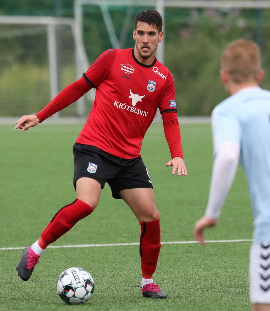 Brotið á Jason úti hægra megin. Alejandro tekur spyrnuna eins og allar hjá heimamönnum. Valgeir á skotið sem fer framhjá