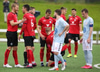 Heimamenn spila í sínum hefðbundnu búningum, rauðar treyjur og svartar buxur. Leiknismenn eru í ljósbláum treyjum og hvítum buxum