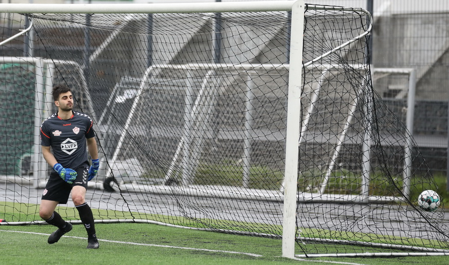 Leiknismenn gera það sama og Jon þarf að hafa sig allan við, hann blakar honum í horn