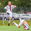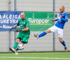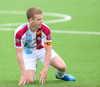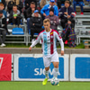 Þórir Guðjónsson með skalla sem fer framhjá markinu. Hann sneiddi boltann snyrtilega með rauðum kollinum. Minnti á Jared Borghetti hjá Mexíkó á HM 2002.