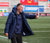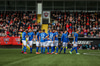 Kaj tekur hornið stutt á Aron sem að setur boltann aftur fyrir endamörk. Þá hefur Pétur séð nóg og flautar til hálfleiks. Mjög bragðdaufur fyrri hálfleikur.
