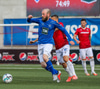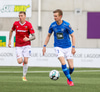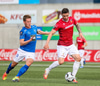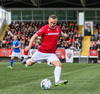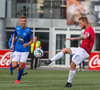 Valgeir Lunddal fer hér illa með Alex Þór og reynir skot fyrir utan teig en það er hátt yfir markið.