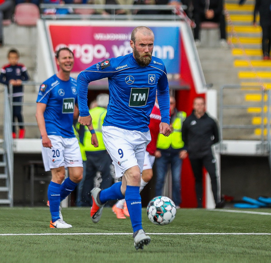 Fyrsta alvöru færi leiksins komið. Rasmus með geggjaða sendingu sem að Kaj Leo tekur vel á móti. Þar kemur Valgeir í overlap og rennir honum útí teiginn á Kristin Frey en skot hans í varnarmann.
