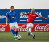 Nú er Aron Bjarnson að sleppa í gegn en skot hans er laust og á Halli í markinu ekki í neinum vandræðum með það. Kraftmiklir Valsarar þessa stundina.
