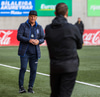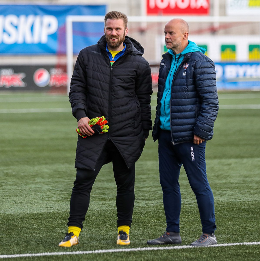 Þá eru leikmenn orðnir vel heitir og skella sér til búningsklefa, fyrir lokaorð í eyra. Spennandi leikur hérna framundan.
