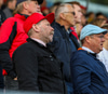 Óli Jó ræðir hér málin við Einar Karl, leikmann Vals, og er síðan rænt í myndatöku. Tekur af sér derhúfuna og allt.