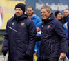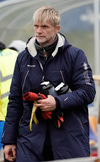 Arnar Grétarsson fagnar sigri í fyrsta leik sem þjálfari KA! Þeir þurfti að bíða lengi eftir sigurmarkinu, en það kom frá varamanninum Steinþóri.