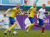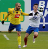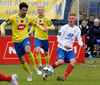 AXEL SLEPPUR EINN Í GEGN! Hann er einfaldlega sterkari en Mikkel Qvist og Qvist er heppinn að sleppa við það að fá á sig víti! Jajalo ver frá Axeli sem fær boltann aftur og neglir í Qvist og vill hendi, en það var aldrei hendi.