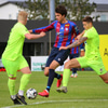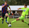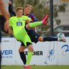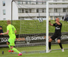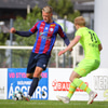 Frosti hleypur upp hægri kantinn og gefur knöttinn fyrir mark Leiknis þar sem Kristinn Þór mætir boltanum og sparar honum að marki en Smit vel á verði og handsamar boltann