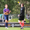 Lögmaðurinn á flautunni veifar spjaldinu framan í Daða eftir háskalega tæklingu