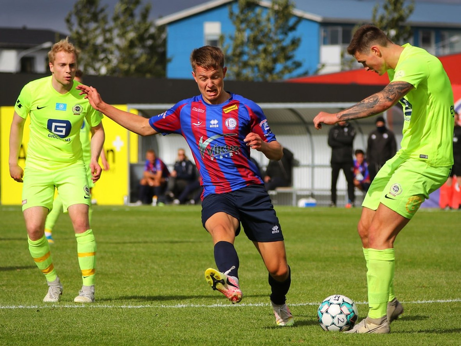 Magna menn eru hættulegri þessa stundina. Leiknir nær ekki að koma boltanum af eigin vallarhelming.