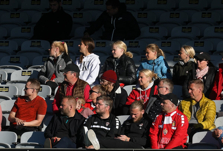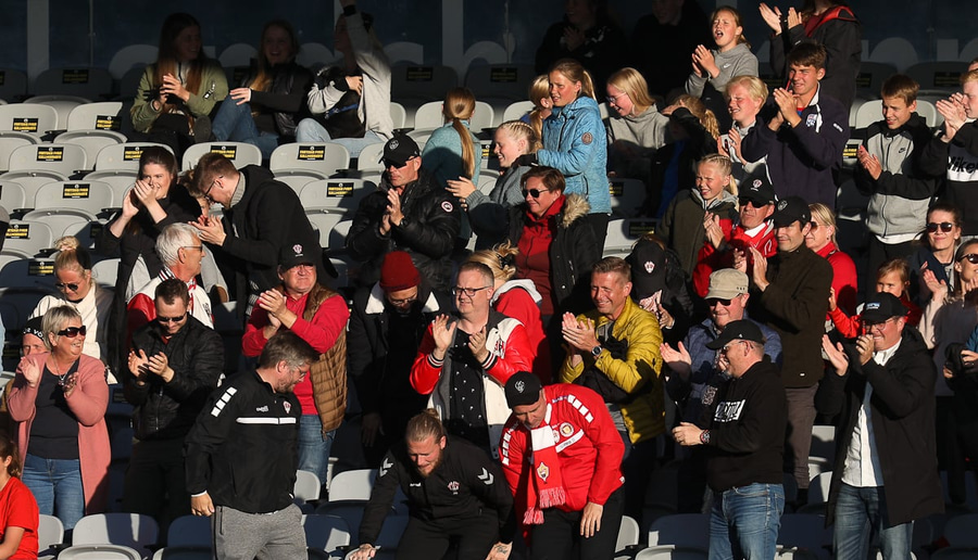 Það eru 290 manns mættir í rjómablíðuna hér á Meistaravöllum. Enn pláss fyrir fleiri ef þú ert að velta fyrir þér að kíkja.
