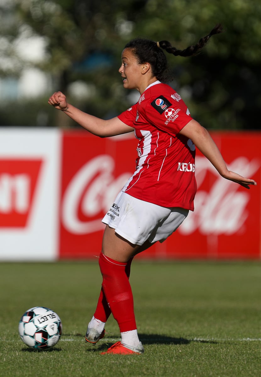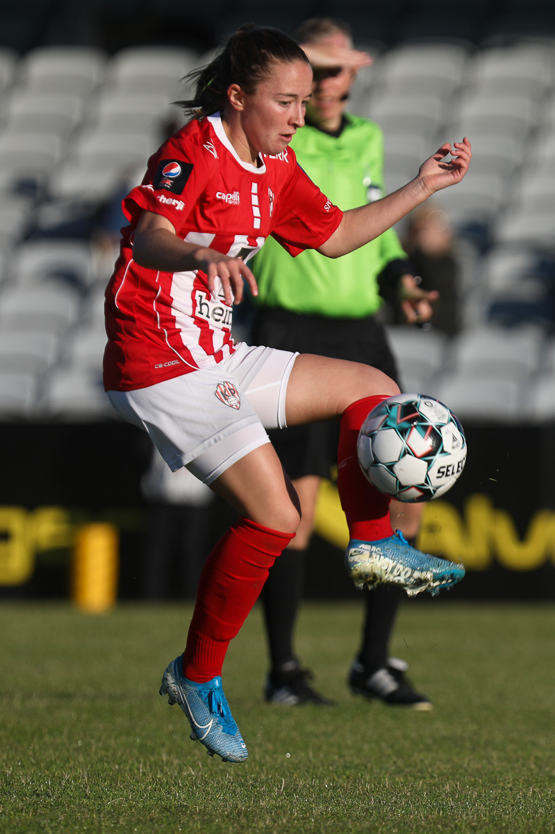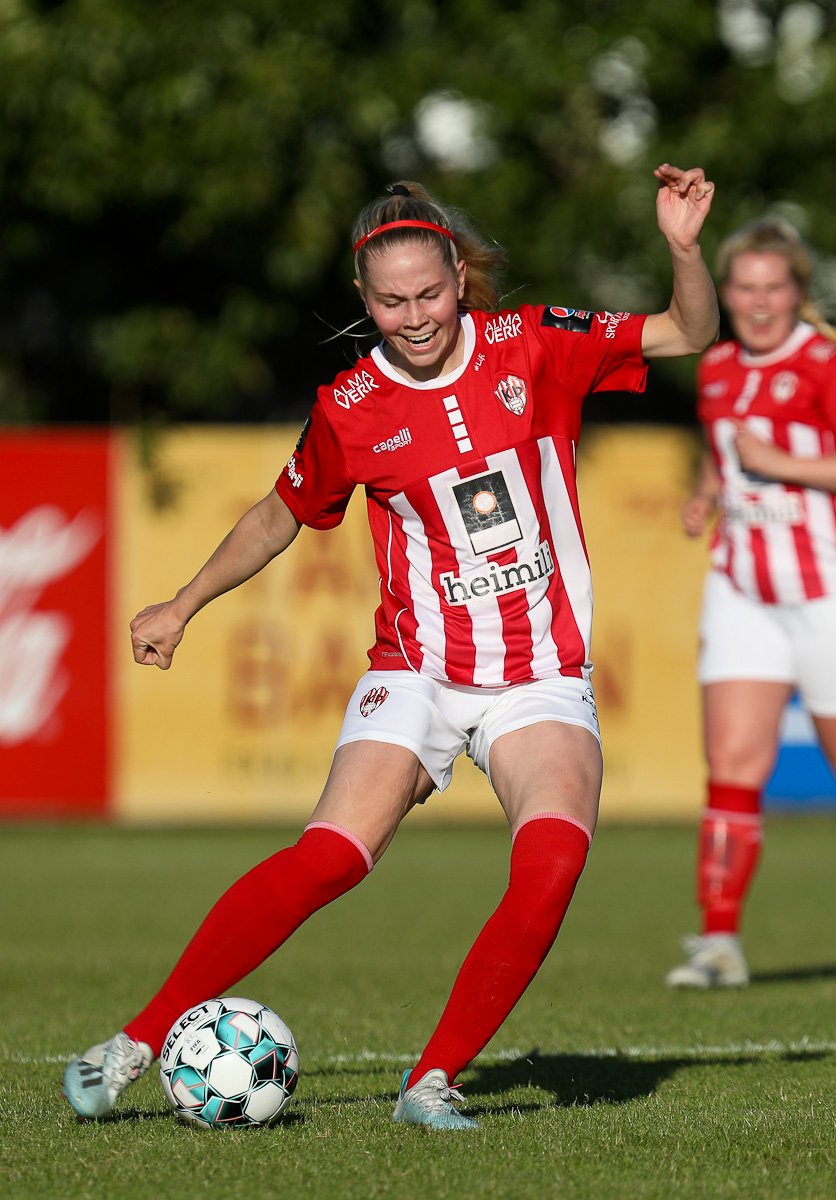 Frábær pressa frá Leu Björt og boltinn dettur fyrir Ollu í teignum. Hún gerir vel að ná skotinu en boltinn fer rétt framhjá fjærstönginni!