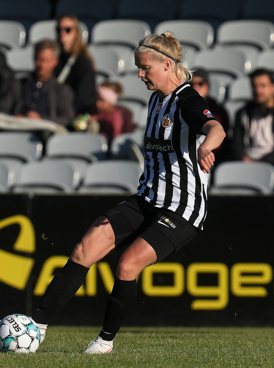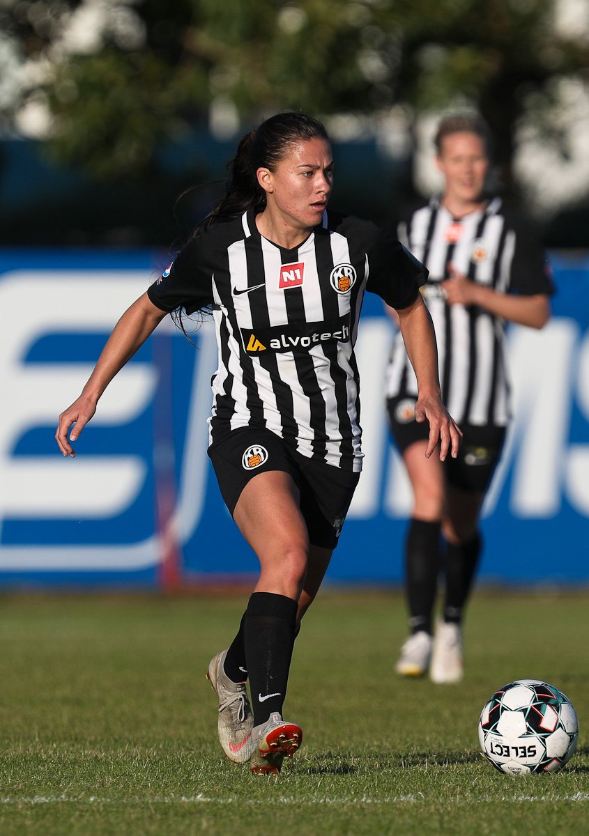 Flott varnarvinna hjá Morgan þarna. Nær að elta hina eldfljótu Thelmu Lóu uppi og hindra hana í að hún komist inn á teig.