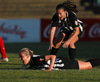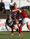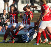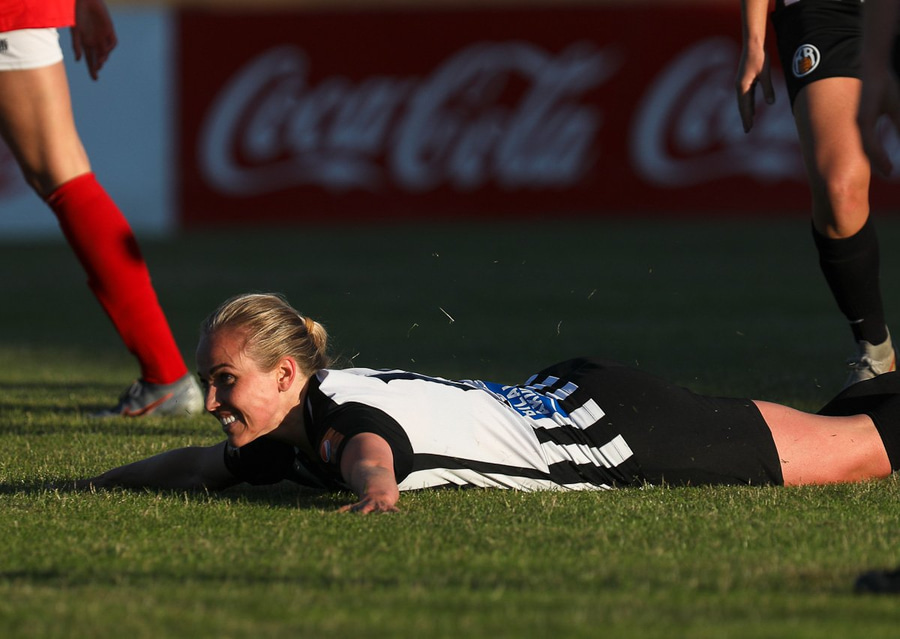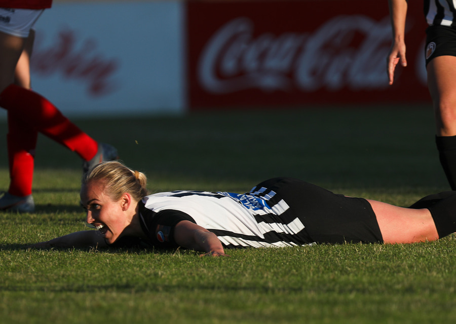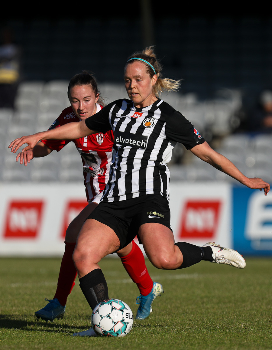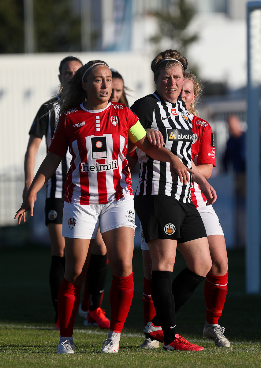 Aftur er Morgan Goff með flottan varnarleik gegn Thelmu Lóu. Sú síðarnefnda er að ógna með hraða sínum en Morgan var að eiga vel tímasetta tæklingu sem kom í veg fyrir að Thelma Lóa kæmist í gegn.