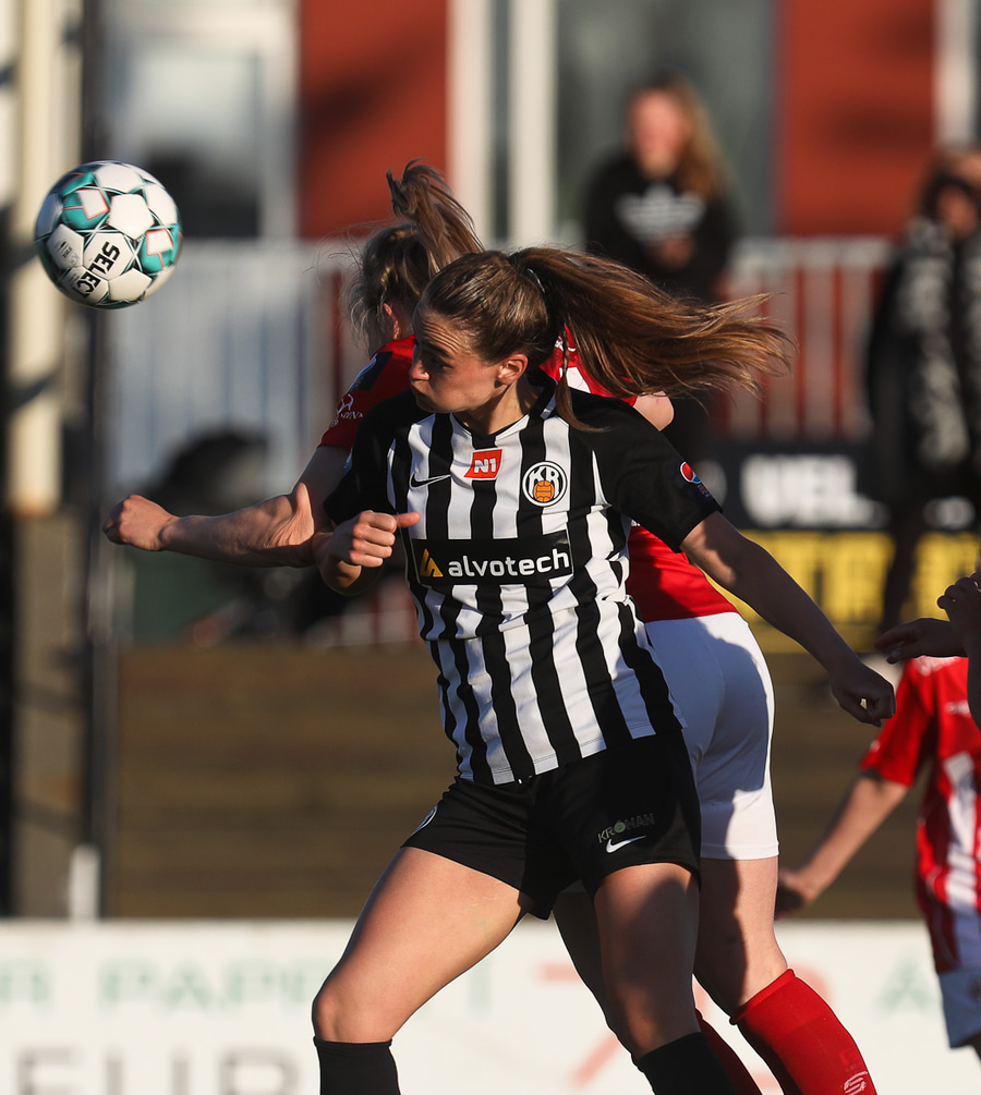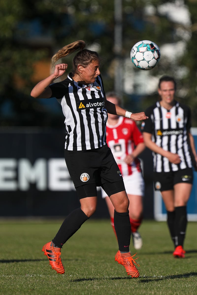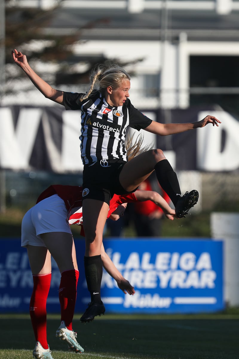 Andrea Rut tekur. Álfhildur vinnur skallann en setur boltann framhjá.