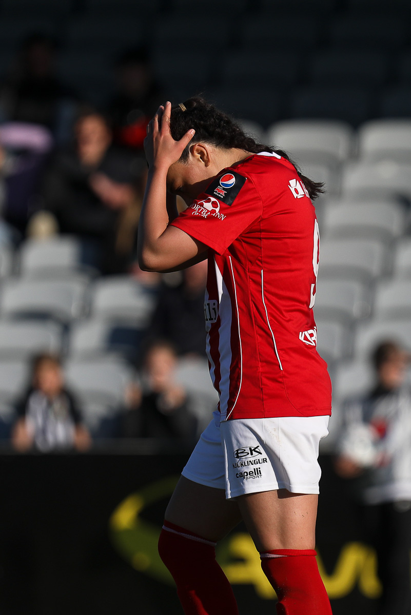 KR-ingar sendu Ölmu eina í gegn. Hún var komin alveg að markinu en Friðrika gerði virkilega vel. Stóð, beið og lokaði svo skotinu. Sannkallað dauðafæri forgörðum þarna hjá KR.