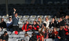 Köttarar með skemmtiatriði hér rétt fyrir hálfleiksflautið. Köttarinn Kristján Kristjánsson sýnir frábær tilþrif í stúkunni þegar hann grípur boltann eftir að Þróttarar höfðu hreinsað.