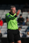 Fyrsta teljandi "feilspor" dómaranna í leiknum. Tríóið er búið að halda vel um taumana.