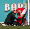 Smá bíó hérna í lokin. Tvöföld skipting hjá Þrótturum sem reyna að drepa leikinn. Þórdís Hrönn reyndi að ýta Lauru stystu leið útaf þegar Þróttarar voru að gera skiptingu og Laura gerði sig ekki líklega til að yfirgefa völlinn. Laura benti hinsvegar á skiltið hjá Magga Bö, vallarstjóra, og þar var talan 9 á skiltinu. Einhver misskilningur eða þykjustu misskilningur í það minnsta. Bæði Laura og Þórdís fá spjöld. Bæði Laura og Stephanie (númer 9) áttu að fara útaf.