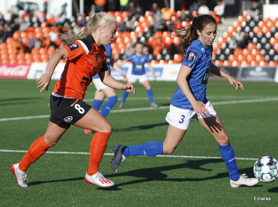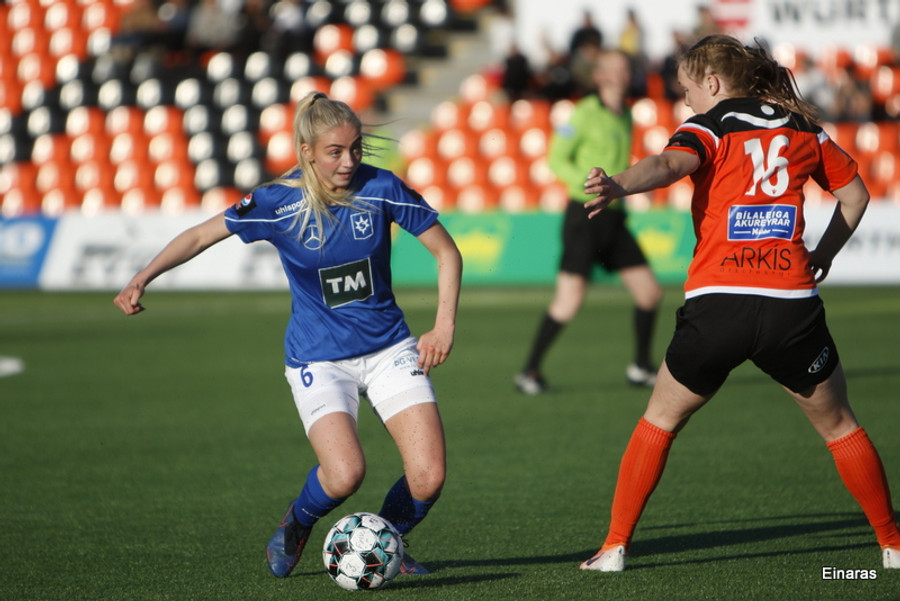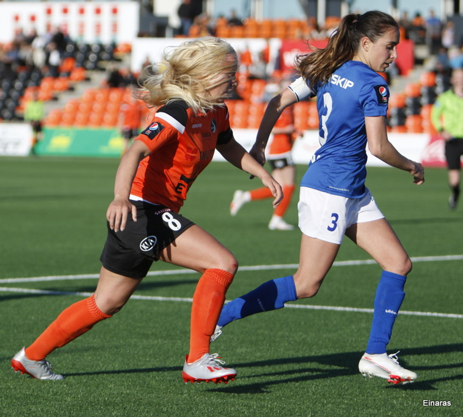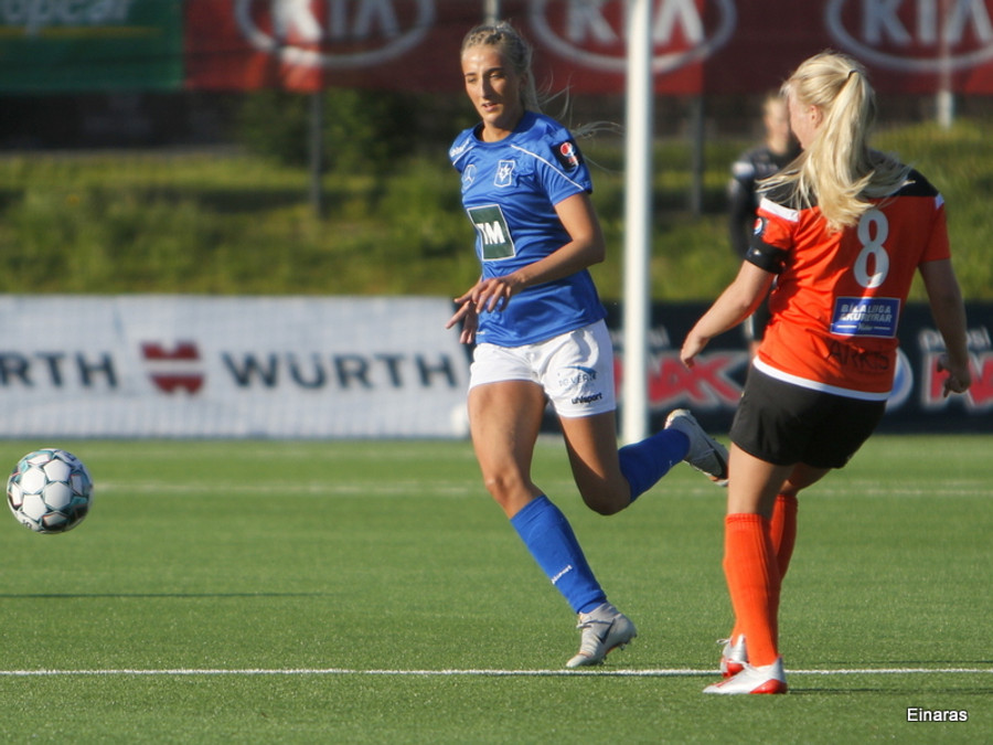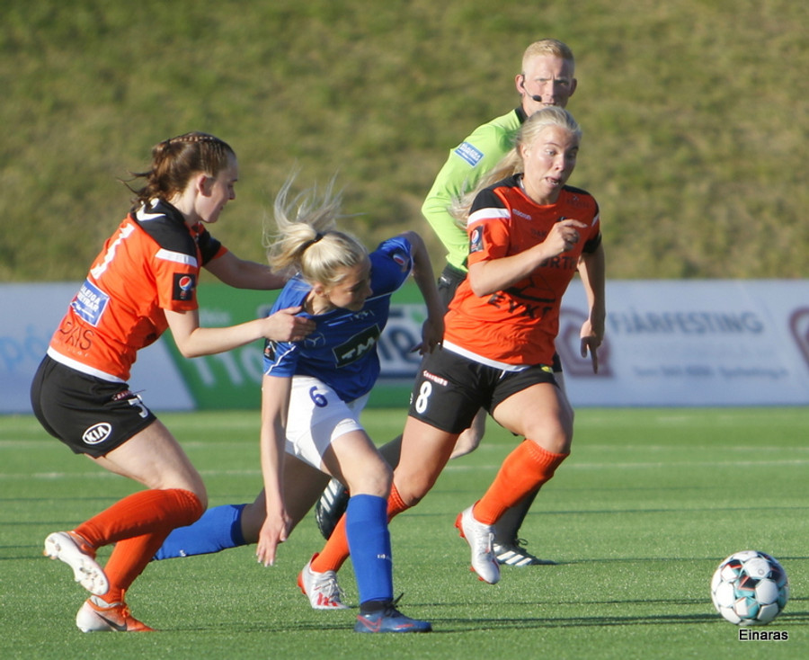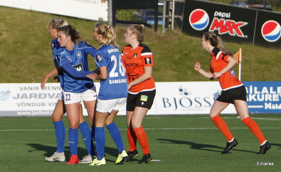 Fylkir leiðir hér 1-0 í hálfleik eftir glæsimark frá Evu Rut.