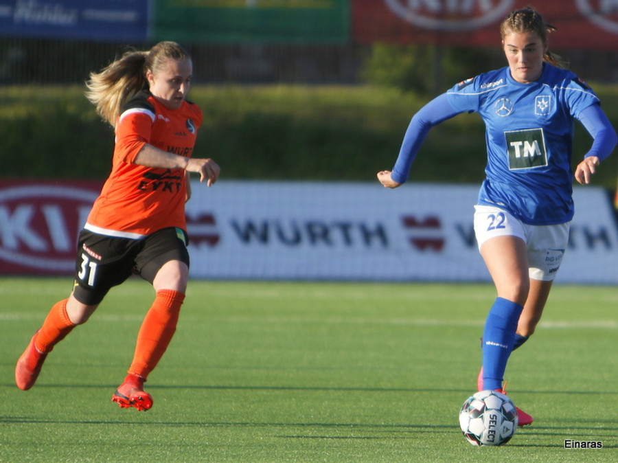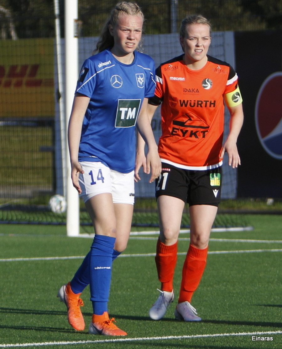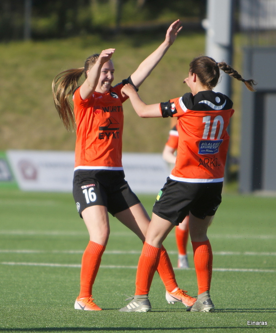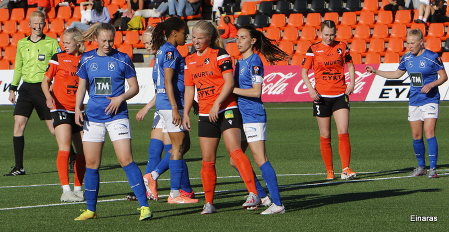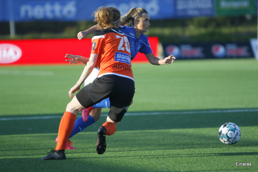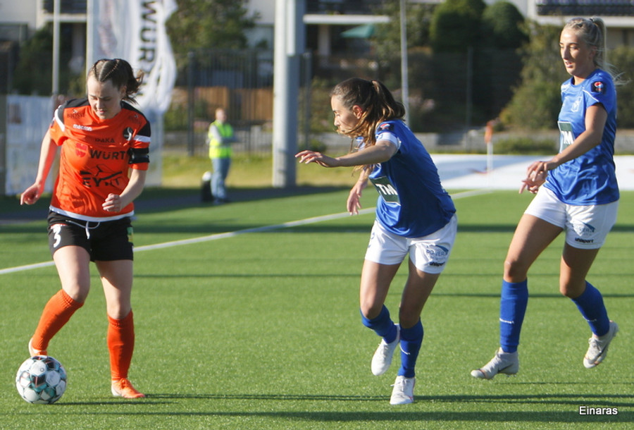 Fylkir leiðir hér 1-0 í hálfleik eftir glæsimark frá Evu Rut.