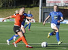 Fylkir byrjar með boltann og sækja í átt að sundlauginni.