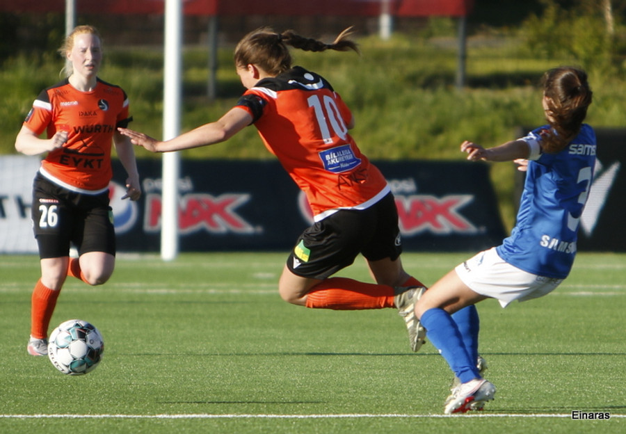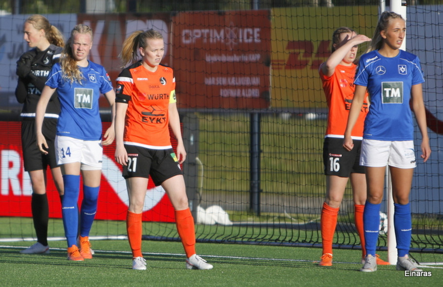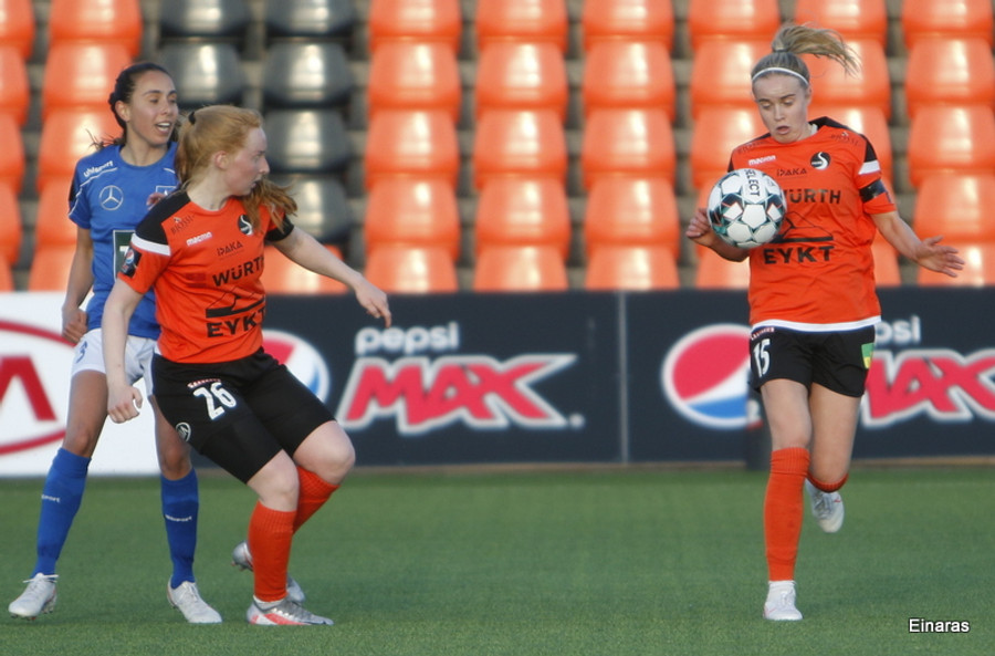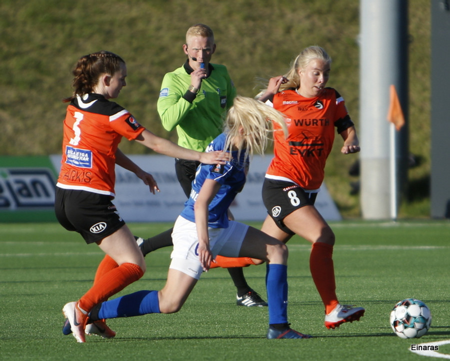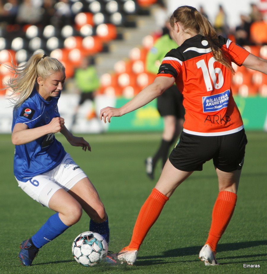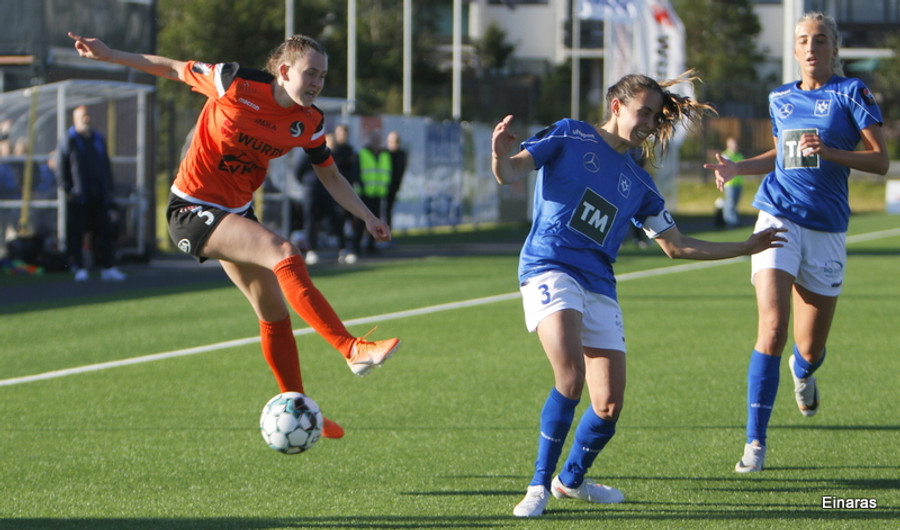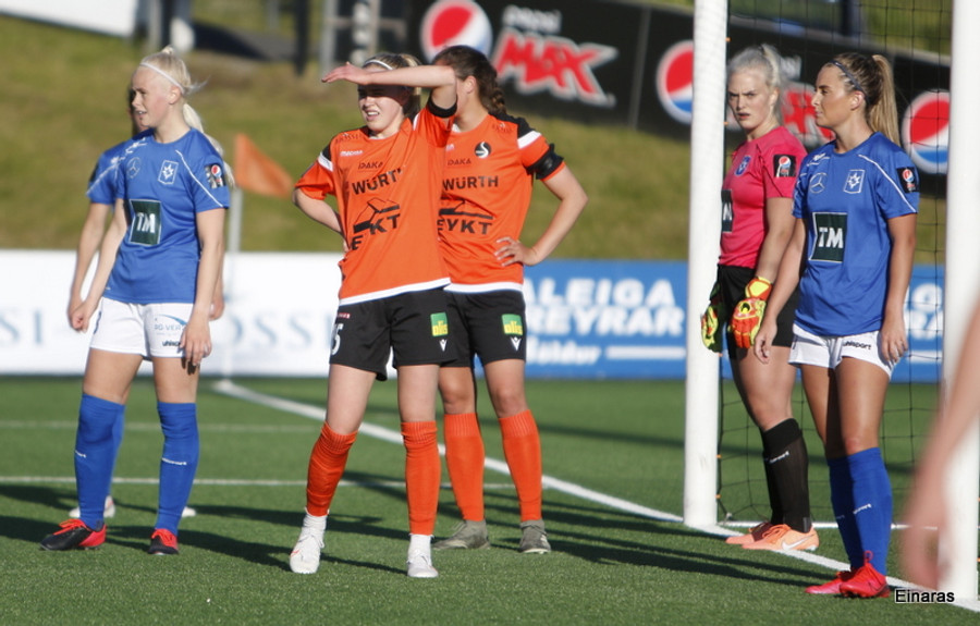 Það héldu allir að vellinum að þarna hefði Sólveg skorað og voru byrjaðir að fagna en hún var ein á fjær og skýtur í stöng þar sem Birta var ekki sjáanleg. Þetta hefðu þær þurft að nýta.