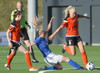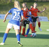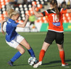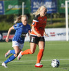 Snædís alveg að sleppa í gegn en Cecilía kemur vel út á móti og Íris kemur boltanum í horn.