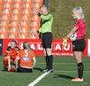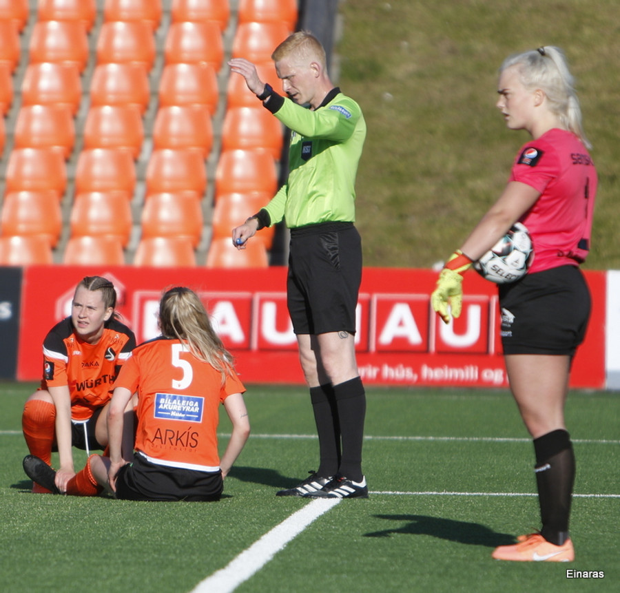 Já Sólveig þarf hér að fara af velli. Vont fyrir Árbæinga að missa hana hér útaf