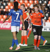 Þórdís brýtur af sér og rífur í treyjuna og Shameeka reiðist og mér sýndist hún gefa Þórdísi olnbogaskot. Ljótt að sjá svona.