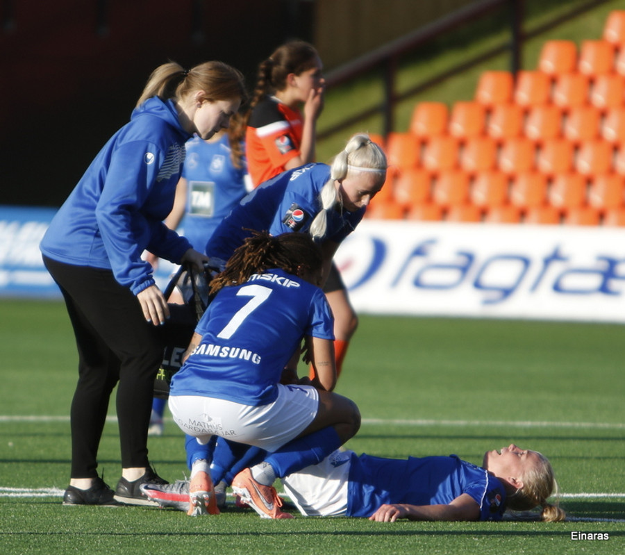 María Eva liggur hér eftir og sjúkraþjálfarinn hleypur inn. Sá ekki alveg hvað gerðist en vonandi er allt í góðu.