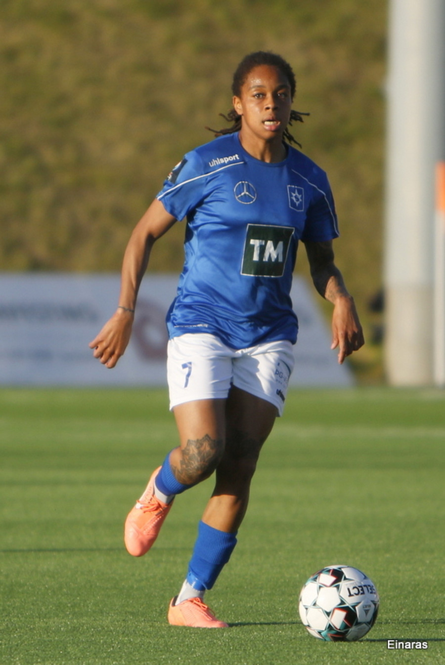Shameeka fær frábæra stungusendingu inn fyrir en ákveður á einhvern óskiljanlegan hátt að stoppa boltann og er alltof sein svo Cecilía nær að komast fyrir. Shameeka reynir þá sendingu til hliðar sem Cecilía kemst inn í.